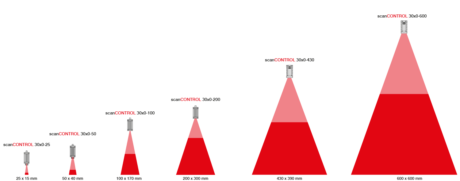 scanCONTROL 30x2 雷射掃描儀現在還提供 430 x 390 mm或 600 x 600 mm的大測量區域。這樣就可以高精度地檢測大型測量物體。