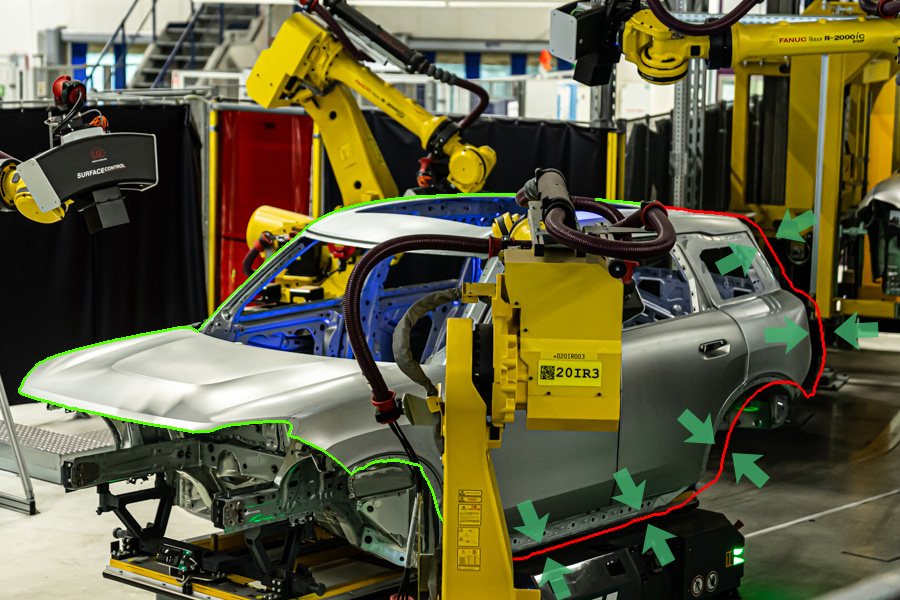 The surfaceCONTROL measuring systems are equipped with an integrated 6D offset compensation that automatically corrects positional or orientation deviations of the car body. This enables fast, precise and with highly repeatable measurements, even when slight misalignments are present.